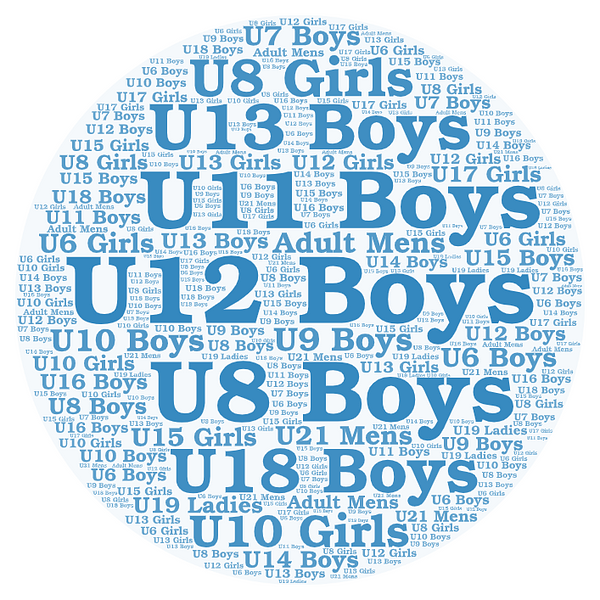 Club Ages Groups range from U6-U18 Boys, U6-U19 Girls, U21 and Adult teams.